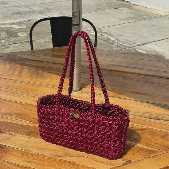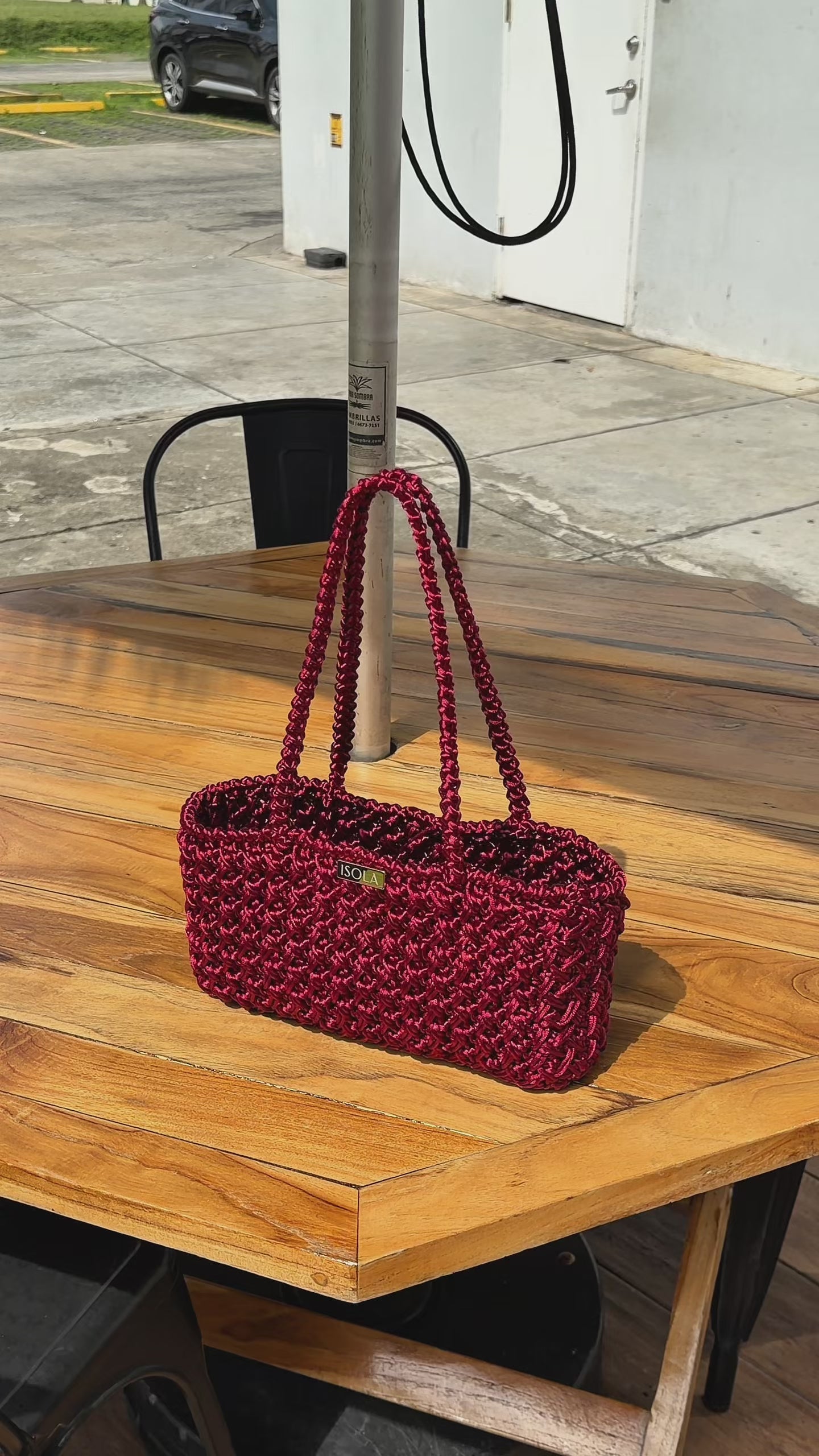 Your bold everyday essential. Tejida a mano con hilos satinados en un intenso cherry tone, la Taboga 2.0 eleva la silueta clásica con un diseño más moderno, ligero y versátil. Sus asas dobles tejidas aportan un look effortlessly chic, mientras la plaquita distintiva de ISOLA añade ese signature touch que la convierte en un must-have. Perfecta para llevarla from coffee runs to sunset plans, es el accesorio ideal para añadir un luxury coastal vibe a cualquier outfit.